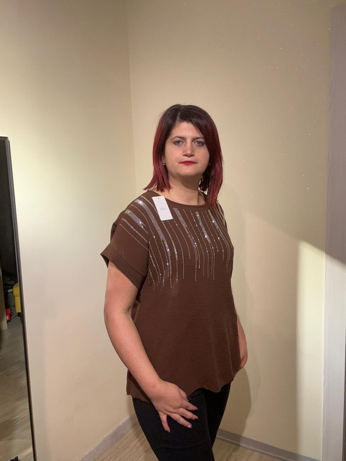MAXI T-SHIRT DONNA MARRONE CON STRASS
