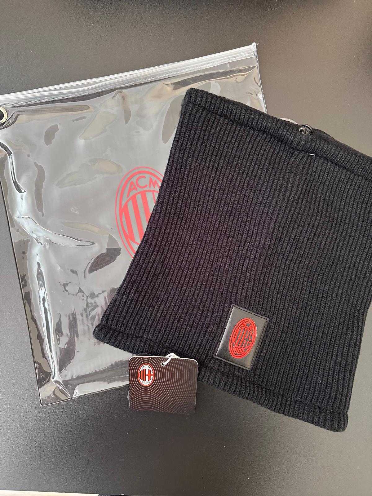 Scaldacollo AC Milan originale, perfetto per proteggere collo e viso durante le giornate più fredde, senza rinunciare alla passione per la propria squadra del cuore. Il design total black è valorizzato dal logo ufficiale AC Milan, discreto ma immediatamente riconoscibile.