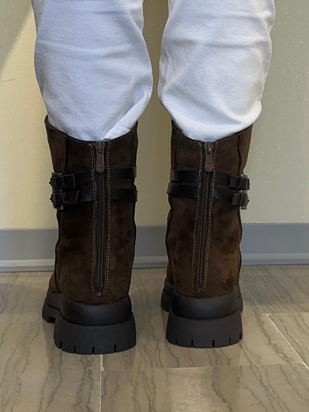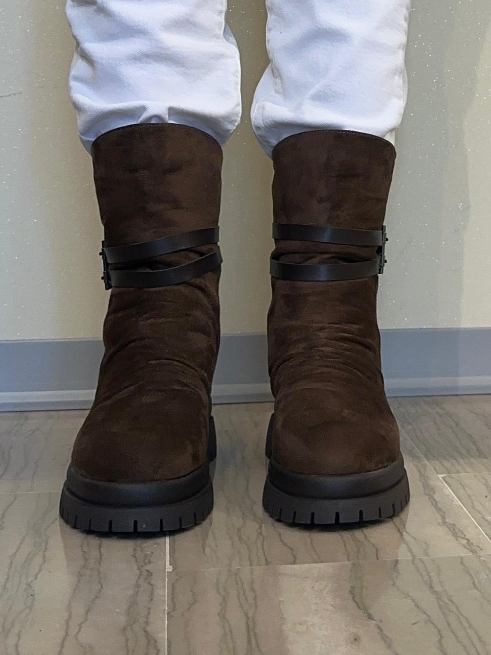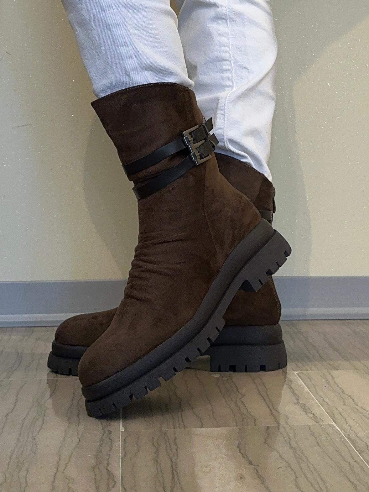 Elegante e grintoso al tempo stesso, questo stivaletto Crichic in pelle scamosciata color caffè è il compagno ideale per la stagione fredda.