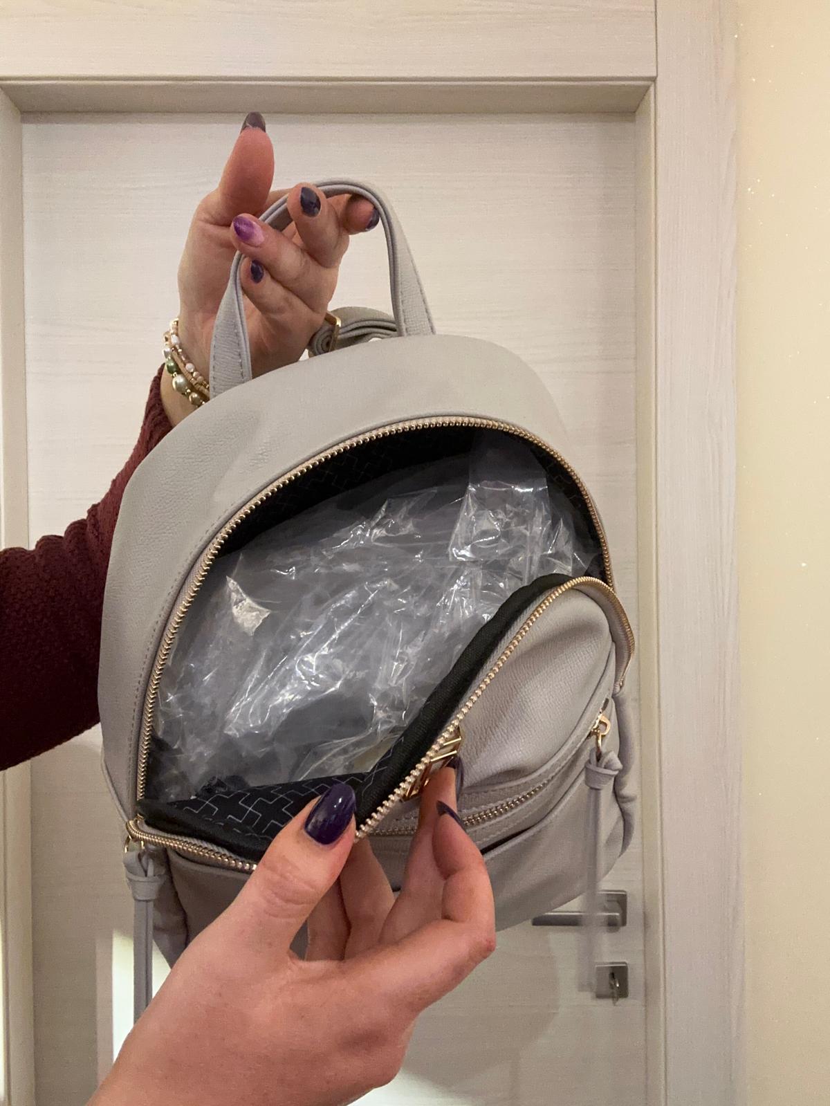 Zaino minimal chic, tonalità neutra che si abbina a tutto, dettagli color oro.